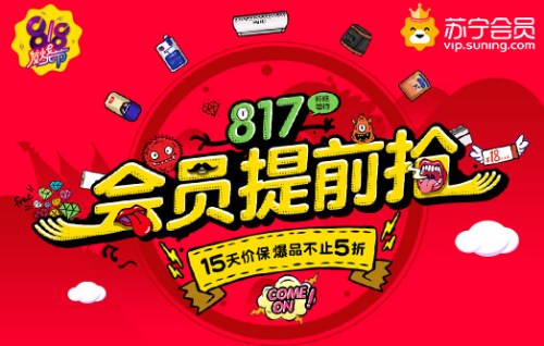 中新网8月16日电 每月17日是苏宁的专属会员日,今年8月17日恰逢苏宁818发烧节,为此,苏宁投入了千万资源,推出免费清洗、免邮服务、高额理财、退货无忧、任性付免息等会员专享服务,并且在8月17日当天开启“会员提前抢”活动,让会员提前锁定实惠。