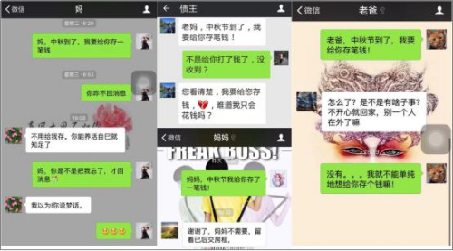 中新网9月18日电 中秋节期间,天弘基金推出的“中秋爸妈神回复”活动受到了网友的热情参与。给爸妈发一条短信或微信“中秋节到了,我要给你存笔钱”,看父母会有什么样的反应。网友纷纷晒出爸妈的回复截图,都惊讶于原来爸妈竟然是如此深藏不露的段子手。