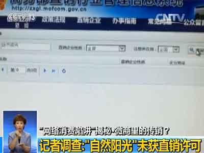 这个“自然阳光”公司并没有获得直销许可,对此,法律专家表示:根据我国的相关规定,没有批准的直销,就是违法的。这就意味着,购买这些商品的消费者是没有保障的,一旦出现问题,找不到追究责任的方面。