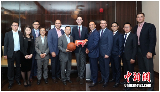 中新网10月12日电 10月11日,NBA国际系列赛中国站的第二场比赛即将在北京火热开打之前,一场与消费者健康生活相关的重量级会晤也在北京上演。蒙牛集团新任总裁卢敏放与NBA总裁亚当•萧华(Adam Silver)展开深度对谈,不仅回顾总结了双方合作十年的骄人成绩,更明确表示未来还将在多个领域开展深度合作,继续为消费者的营养健康提供全方位的支持。NBA副主席及首席运营官马克•塔特姆(Mark Tatum)、NBA中国首席执行官舒德伟(David Shoemaker),以及蒙牛集团品类管理系统常温乳制品管理中心总经理宋继东、蒙牛集团品类管理系统低温乳制品管理中心总经理吴洪涛等双方高层也悉数出席。会面现场,双方还互赠印有“十年”字样的定制版篮球和彩绘牛,纪念长达十年的合作友情。