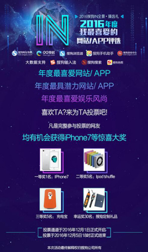 2016搜狗IN全景·臻选礼我最喜爱的网站/APP评选开启