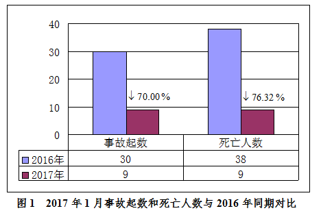2017年1月,全国未发生房屋市政工程生产安全较大事故,比2016年同期事故起数减少2起、死亡人数减少8人。
