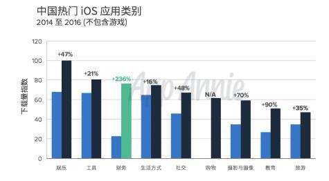 互联网金融在移动平台的带动下,已经将成为当下的热门话题之一。App Annie 数据显示,在 2014 到 2016 年里,中国 iOS 财务类应用的下载量增长了 265%,成为游戏之外下载量增长最快的类别。而传统国有和商业银行正积极迎接新的挑战,迎头追赶已经抢占了移动先机的金融巨头。