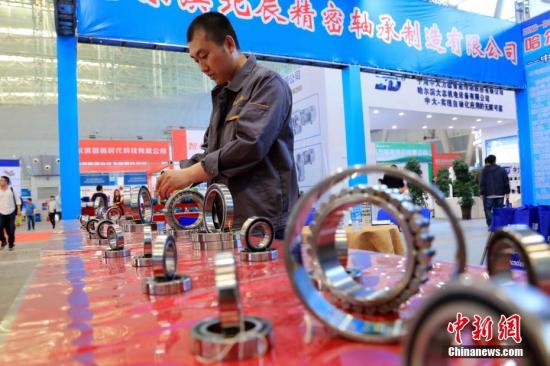 资料图:一展商正在展示精密轴承。 中新社记者 王舒 摄