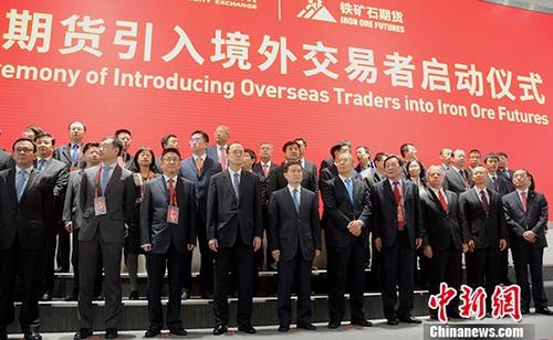 5月4日,铁矿石期货引入境外交易者启动仪式在大连商品交易所举行,标志着中国铁矿石期货市场正式对外开放。铁矿石期货是继中国原油期货之后第二个对外开放的期货品种。 中新社记者 杨毅 摄