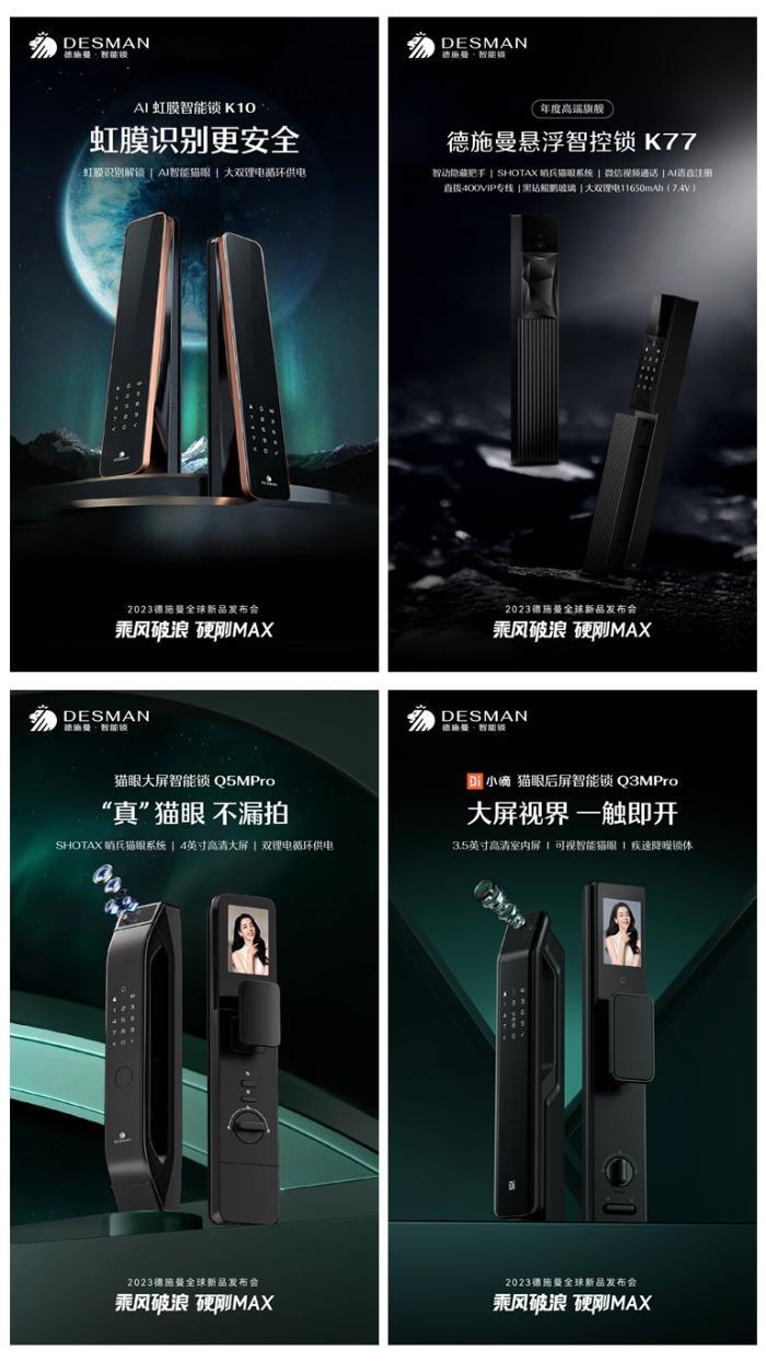 4月17日,高端智能锁品牌德施曼四款重磅新品正式发布,AI虹膜智能锁K10、悬浮智控锁 K77、猫眼大屏智能锁 Q5Mpro、猫眼后屏智能锁 Q3MPro,再次引领行业发展新风向。随着高端市场多元产品布局的进一步完善,德施曼在高端智能锁市场的绝对优势已经显现,持续强化品牌对消费者心智的占领。