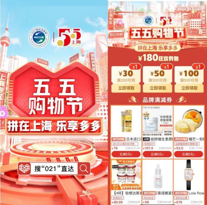 上海“五五购物节”即将启幕 拼多多40亿补贴助力提振消费
