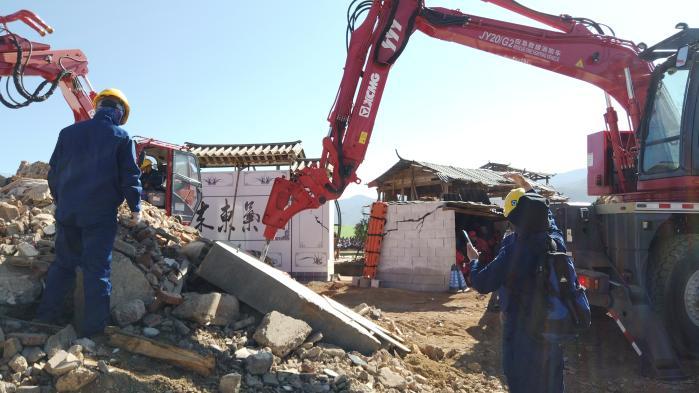 在大理损毁道路抢通项目,徐工JY20G4轻型多功能应急救援消防车作为“开路先锋”破拆清障,一气呵成。