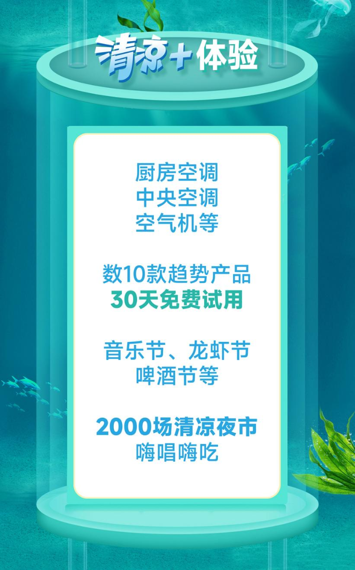 夏日期间,苏宁易购全国门店还将举办音乐节、龙虾节、啤酒节等超2000场清凉夜市,为消费者提供“可逛、可玩、可选”的消费体验。除城市外,苏宁易购还在县乡市场加大投入,全国超13000家零售云门店暑热期间不打烊,同步推出空调、冷柜、循环扇预存1元抵100元等优惠活动,以及直播嗨购、夜场K歌、西瓜畅吃等1000场夏凉集市,为县镇消费者提供消暑纳凉的好去处。