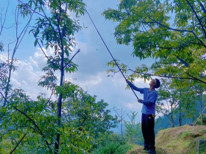 “从这头到山的那头,全是我们村子的山核桃树。等到了打山核桃的时候,年轻人都回来了,村里比过年还热闹哩!”