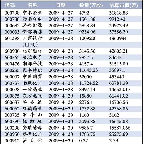 值得一提的是,本周解禁的204亿股包括了A股和H股两部分。H部分是28日将解禁的工商银行(601398)120.92亿限售股,这部分股份占了本周统计解禁总量的59%,解禁对A股影响不大。工行日前公告称,本周,高盛共持有164.76亿股工行H股,有一半将于4月28日解禁,其余将于10月20日解禁。而高盛3月25日宣布,自愿将所持有的80%(约131.8亿股)工行限售股限售期延长1年,至2010年4月28日;余下的20%将于4月28日解禁。如高盛拟出售其将于2009年4月28日解禁的H股股权,高盛将会研究能提高价值及降低市场影响的可行方案,并优先考虑以私募配售方式出售给投资者。