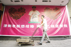 面对朋友的反对,他表示已做好心理准备,横幅悬挂一周未果后,他将启程前往成都,将征婚范围再扩大。昨日,记者采访离开时,还没有人前来应征。(记者 蒋炀)
