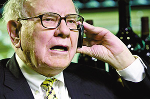 可以肯定的却是,巴菲特在1年前那场金融危机的高峰期间,每天都要接到大量求助电话。有时候,巴菲特为了谋求高额回报,偶尔也会同意帮助电话另一端陷入恐慌的金融家。比如,在去年秋天金融危机最严重的时候,巴菲特向高盛集团注资50亿美元,得到了股息率10%的累积优先股。两周之后,巴菲特还获得了通用电气(GE)的永久优先股和认股权证。(吴文)
