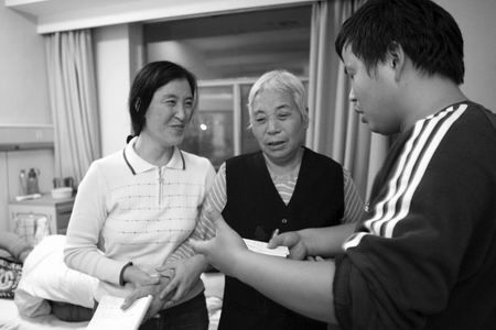 在一间病房里,脸色苍白的小梦梦正安静地躺在病床上看电视。她的奶奶、妈妈陪伴在旁边,妈妈正给小梦梦削梨吃。听说是大河报来采访,小梦梦的奶奶、妈妈“腾”地从床上站起来,握着记者的手连声感谢。