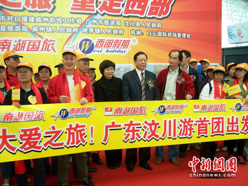 中新网广州3月30日电(记者 莫非 通讯员 林月明)“想看看汶川重建后的新面貌,距离地震将有两年,现在去更有特别的意义。”亲历了2008年汶川大地震,并作为广东震后四川游首团游客再入四川的钟先生30日在广州白云机场对记者坦言。