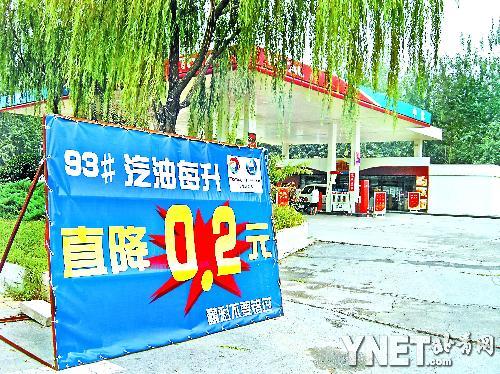 近日,随着各地成品油批发价的节节走低及市场需求疲软,加油站优惠降价热潮仍在继续。记者昨天在望京桥和姚家园路的中化道达尔加油站看到,巨大的“93#汽油直降0.2元/升”宣传招贴在加油站口夺人眼球。