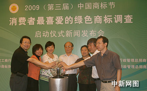 中新社北京八月二十六日电 (记者 李妮)二00九(第三届)中国商标节的重要项目之一——“消费者最喜爱的绿色商标调查”活动二十六日在北京正式启动。消费者可通过报纸、网络、短信等方式进行票选,在中国的家用电器、服饰、汽车等十类商品中,评选出一百个最喜爱的绿色商标。