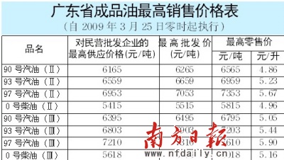 昨晚,国家发改委决定,自今日零时起小幅调高国内成品油价,即在现行价格的基础上,汽油每吨上调290元,柴油每吨上调180元。根据国家规定,省物价局制定公布了广东省成品油销售价格。成品油价格小幅上调后,国Ⅱ标准90号汽油每升上调0.22元,93号汽油每升上调0.23元,97号汽油每升上调0.25元,0号柴油每升上调0.15元;国Ⅲ标准90号汽油每升上调0.21元,93号汽油每升上调0.23元,97号汽油每升上调0.25元,0号柴油每升上调0.15元。
