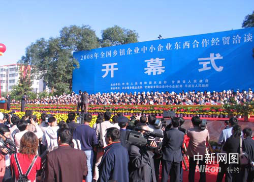 中新网平凉9月12日电 (记者 罗德惠 殷春永)2008年全国乡镇企业中小企业东西合作经贸洽谈会今天在甘肃平凉开幕,海内外300多家乡镇企业中小企业在这里“相亲”,展开经贸洽谈与合作活动。