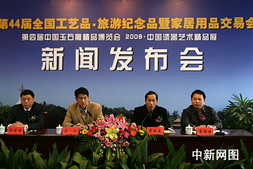 中新网扬州3月23日电(记者 崔佳明) 第44届全国工艺品、旅游纪念品暨家居用品交易会(以下简称旅交会)新闻发布会今天上午在江苏扬州举行,扬州市政府副秘书长龚振志主持,扬州工艺“掌门人”刘爱国通报了本届旅交会的总体安排和筹备工作情况,中国工艺美术协会秘书长王山介绍了此次活动的目的和日程安排。