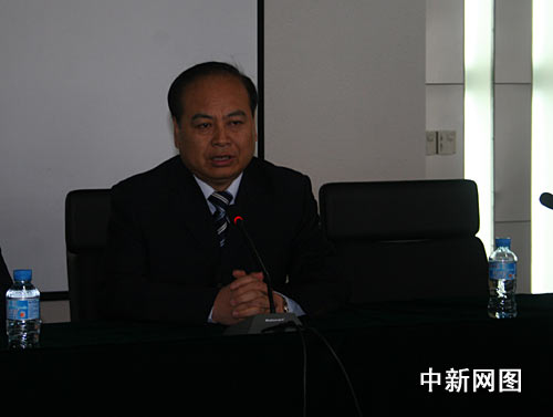 阎良航空基地管委会主任金乾生为网媒记者介绍阎良飞机城