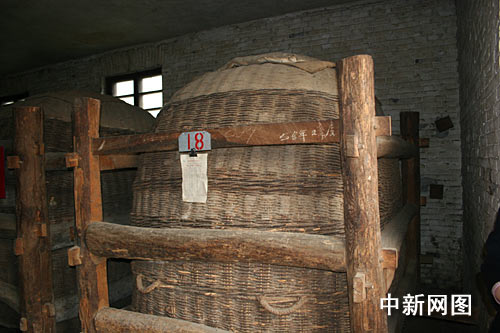 在1956年建造的青砖红瓦的西凤酒储存库房内,放着两排大酒海,大酒海是用一种产自秦岭深处多年生的特殊藤条编制外壳,然后先用豆腐等原料从里面填糊藤条的缝隙,等干燥后,先后在里面裱糊20层白棉布,等再次干燥后,再在其表面涂上蜂蜡和菜籽油养护一段时间才可投入使用。库房内存储着各个时期封存的西凤酒,从1957年到20世纪80年代,网络媒体记者多是80后,纷纷找与自己“同龄”的大酒海合影。