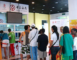 8月11日,是奥运青年营中行代兑点开业以来最繁忙的一天。从早八时营业起,代兑点两个窗口就排起了长队。中行员工全力以赴,分工协作——对外,专人维持排队秩序、指导客户填写“水单”;对内,加快办理流程,同时压缩员工轮岗休息吃饭时间。全天代兑点共为190多名客户办理了12个币种的兑换业务,折合33010美元,支付224138元人民币,每位前来办理业务的外国朋友都满意而归。