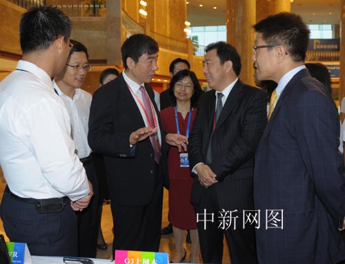 在年会会场索菲特酒店大堂的“年会通信服务区”,中国移动海南公司周承阳总经理向奚国华副部长和李国梁副省长介绍了3G(TD-SCDMA)在本次年会期间提供通信服务和保障的情况,并演示了视频电视、可视电话、G3无线上网卡、G3笔记本、即拍即传等TD特色应用服务,奚国华副部长还详细询问了TD网络建设和优化、信号覆盖的情况和上网卡、上网本的价格、销售和业务发展的情况。奚副部长指出,TD是我们国家自有知识产权的3G标准,涉及我们国家从芯片这样的核心设备到终端和仪器仪表等整个产业链的发展,有利于我们国家整个电子通信制造业水平的提升,国家把TD运营牌照发给中国移动,责任重大,只能成功不能失败。同时,TD的成功也离不开当地政府的支持,非常感谢海南省政府对TD建设和发展的支持。