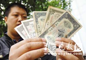 陈先生的妻子张女士告诉记者,她老家是安徽来安,纸币是自己爷爷独居的大哥留下的,这位大爷爷曾在某炮兵部队服役,后退役回家,带回不少这种纸币,还将家中房屋翻新,因一直未婚,死后张女士的奶奶在整理其遗物时,从其箱中发现已停止流通的20余张这种纸币。张女士回忆,小时候她经常跟伙伴们玩耍,这些纸币被当作玩耍的道具,遗失多张,侥幸留下了7张。 (范晓林 梅建明)