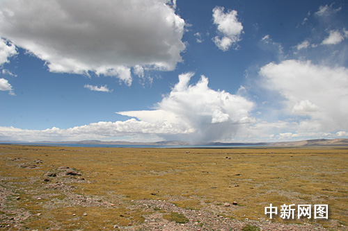 西藏“圣湖”纳木措是世界上海拔最高的淡水湖,蔚蓝的湖水,雪白的云朵与绿色的草原构成了一幅最优美的图画。