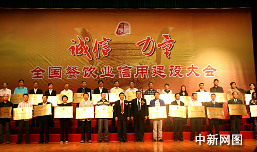 中新网扬州10月18日电(记者 崔佳明 王春龙)今天下午,全国餐饮业信用建设大会在江苏扬州召开,并同时发表了餐饮行业诚信宣言。中国烹饪协会会长苏秋成,扬州市副市长王玉新,国家商务部市场秩序司副司长温再兴以及全国厨师协会有关领导和89 家信用获奖餐饮企业代表等出席大会。