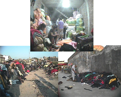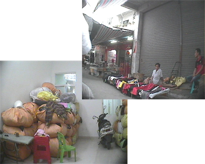 简单的攀谈之后,这名商贩极为热情地邀请记者回家看货,经过近半个小时的车程,记者来到了一座三层小楼的门前。走到二楼记者看到,在这个已经被用作仓库的房间里,堆满了一捆一捆的洋垃圾服装,而这,就是商贩口中所称的旧衣服。