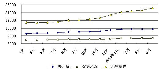 主要化工产品价格有升有降。4月份大中城市化工产品价格基本稳定,不同产品价格有升有降。其中,高压聚乙烯平均价格为每吨12468元,与上月相比下降0.87%;天然橡胶平均价格分别为每吨23344元,与上月相比上涨4.96%;聚氯乙烯平均价格为每吨7728元,与上月基本持平。