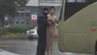 裸男冒雨路口"撒欢" 警察赶到险引冲突