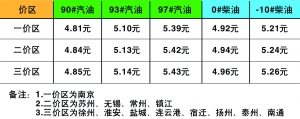 调整后的成品油价格,南京地区90#汽油从4.60元/升上调为4.81元/升,每升上涨0.21元;