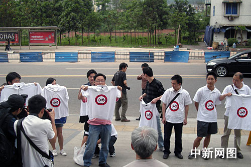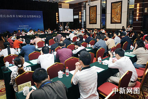 4月17日,重庆市举行改革主城区公交票价听证会,涉及主城800万市民的出行问题,该市人大代表、市政协委员、消费者和学生代表在听证会上发表了意见。下午听证会结束时,十余名重庆市民手举反公交涨价T恤站在听证会门口反对涨价,引起众多参会代表关注。