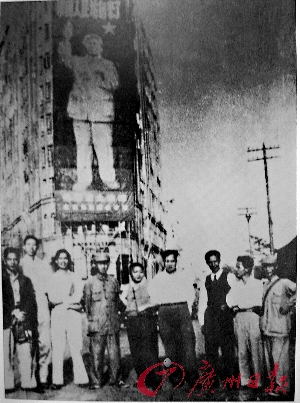 作品创作好后,最后选定了当时广州最高的建筑爱群酒店作为其悬挂地点,因为爱群酒店的对面就是沙面,过去是英帝国主义的领地,这对于广州解放来说更是别具意义。