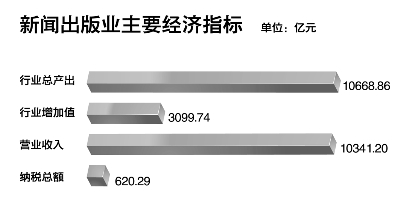 报告显示,全国新闻出版业2009年实现总产出10668.9亿元,增加值3099.7亿元,占同期国内生产总值(GDP)的0.9%。新闻出版总署出版产业发展司司长范卫平说,这表明我国新闻出版产业已具相当规模,尤其在文化产业中所占比例最大。根据报告,各类出版物的出版、印刷、发行及相关活动的行业增加值超过1660亿元,占同期文化产业核心层增加值的60%以上。