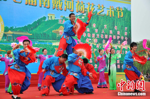 中新网秦皇岛7月27日电(王宝德 尹永吉 李晓霞)27日,“河北省第三届民俗文化节”在秦皇岛南戴河中华荷园盛装开幕。原中共中央政治局委员、国务院副总理曾培炎,中共河北省委常委、宣传部长聂辰席,国家文化部非物质文化遗产司司长马文辉等出席开幕式。