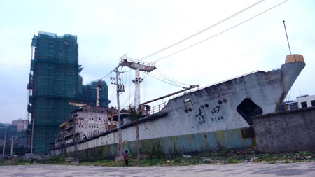 然而,令看船老伯担忧的是,这样一艘“世界之最”,却不知道还能留存多久。他说,由于船太过破旧,学校已经没有在这里举办什么实训活动了,而随着江滨路沿线的开发,周围的地都盖起房子。很多人都说这艘船迟早会被炸掉盖高楼。
