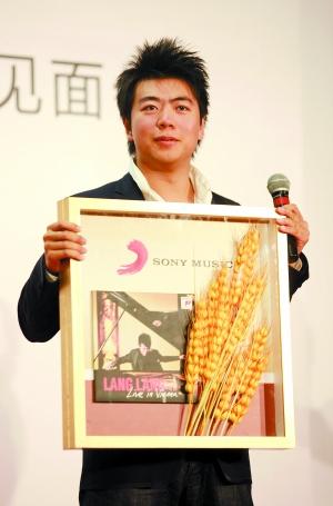 唱片公司为郎朗送上大麦祝他新专辑“大卖”。本报记者 郭延冰 摄