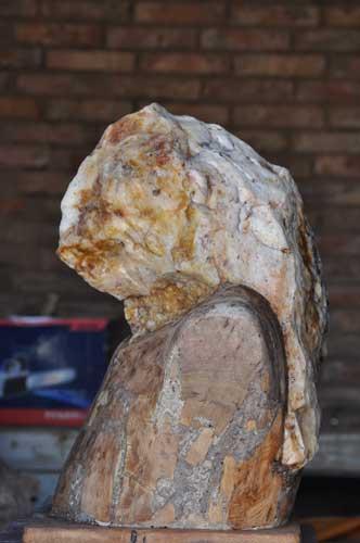 8月21日,记者在乌拉特中旗海流图镇韩先生家中见到了这块奇石。奇石酷似男性猿人右侧头像,头像轮廓清晰完整,纹理舒展自然,记者近距离观察,发现该“北京猿人”可以用“长发披肩、前额稍宽、下颏微凸、面庞清癯、表情沧桑、浓眉大眼、鼻唇清晰、五官端庄、比例适宜、形神兼备、栩栩如生”(如图)来形容,与北京猿人原始的头部特征如眉嵴突出、嘴巴前突、吻部前伸、鼻子扁平极为吻合。韩先生对记者说,他一贯爱好收藏奇石,这块“北京猿人侧面头像”是去年5月中旬他在乌拉特中旗戈壁滩里发现的,质地是蜡黄石,高60厘米,重55公斤。