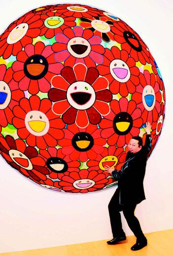 日本当代艺术家村上隆与时尚品牌LV 的合作,被认为是艺术界与市场挂钩的典范。图为村上隆与LV 合作的“太阳花”系列。