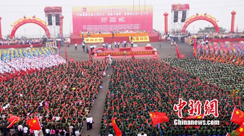 中新网重庆9月25日电 (孟幻)“风在吼,马在叫,黄河在咆哮……”一首《保卫黄河》将人们带回了那段烽火连天的抗战岁月。25日,重庆江津区白沙镇万人同唱抗战歌曲,再现了当地上世纪40年代初举办的中国首次万人抗战大合唱场景。