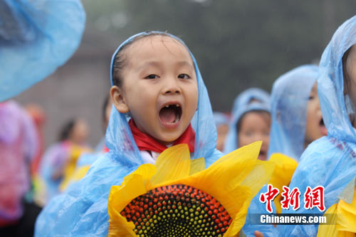 天空飘着绵绵细雨,在现场指挥的带领下,大合唱在《抗日军政大学校歌》中拉开帷幕。上万当地百姓、学生、官员和来自全国各地的爱国人士聚集挥舞国旗,齐唱抗战歌曲。旋律悠扬的《歌唱二小放牛郎》将放牛娃的故事娓娓道来;慷慨激昂的《大刀进行曲》又将众人带回燃情岁月……