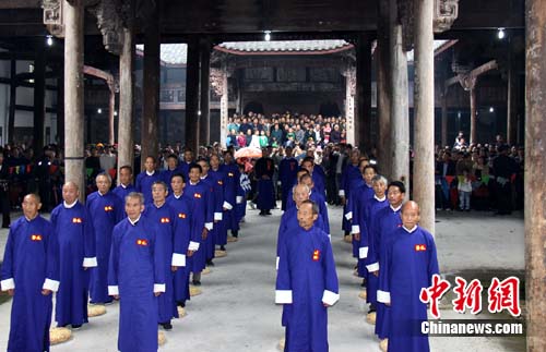 中新网磐安9月28日电(记者 胡旭明 董齐)人们熟知的孔氏家庙在中国有两处,一是山东曲阜,一是浙江衢州。殊不知,在浙江磐安盘峰乡榉溪村不仅有一处孔氏家庙,还生活着孔子的第78代嫡长孙。今天,在孔子诞辰2561周年纪念日之际,这座藏匿于深山中的孔氏家庙经过两多年的修缮后正式对外开放,呼吁全球孔氏后裔认祖归宗。