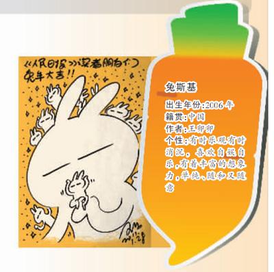 即将到来的兔年,也是兔斯基的本“名”年,王卯卯充满期待。谈到今年的创作计划,她表示会推出一个雪人的虚拟新形象,作品会出动画、漫画、表情等,还有照片、摄影、游记也在策划中,“人生是一个不断完善自己的过程。希望自己新的作品能被大家喜欢,希望中国动漫能够日新月异地发展。”这是王卯卯在兔年最大的愿望。
