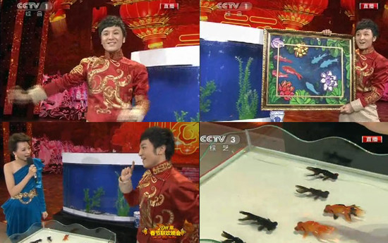 此次,穿着长袍马褂的傅琰东更是有意在他的第七次“春晚秀”上“回归传统”。他说,这个节目的创意原则是“有年味、有新意”,于是想到了“鱼”这个题材。“首先金鱼是中国人培育出来的,其次变鱼是中国古戏法之一。但这也带来一个问题,就是大家见得多了,如何突破?我们绞尽脑汁,希望挖掘得更深些。后来在古书上看到了水戏表演,比如乌龟叠罗汉、鱼跃刀门、鱼分红黑等,从而获得了灵感。”应该说,转向小型情趣魔术对于擅长表演大型舞台魔术的傅琰东来说是个挑战,但他想通过这次古为今用的尝试,强调中国魔术的传承理念。他说,中国是世界魔术的三大摇篮之一,不管他的节目好坏、反响怎样,只是希望能够抛砖引玉,在国外魔坛手法魔术大行其道、中国传统戏法被淡忘的情况下,让大家知道我们祖宗传下来的中国魔术技艺中是有好东西的。