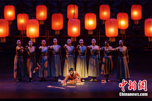 与西方芭蕾相比,中国的芭蕾舞剧起步较晚,但经过多年来的发展,已经形成了自己鲜明的特色,特别在题材与布景上,都具有了独一无二的风格。《大红灯笼高高挂》可以说是中国芭蕾‘走自己民族特色’道路上一部具有标志性意义的作品。在这部芭蕾舞剧中,中国元素更被无限‘放大’,凄切的京剧韵腔飘渺而来,一盏盏红灯笼次第亮起……正是这种中西完美结合的方式,创造了芭蕾舞台上的奇迹。