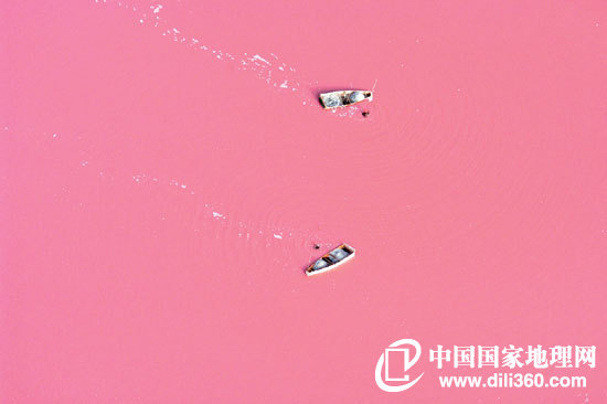 玫瑰湖是一个面积只有3平方公里的盐湖,它位于非洲大陆的最西端—塞内加尔的佛得角,距这个国家的首都达喀尔35公里。佛得角像一弯尖钩从非洲大陆伸向浩瀚的大西洋,玫瑰湖就安卧在与大洋一线之隔的地方。从空中俯瞰,一道细细的金色沙滩将碧蓝色的海水与粉红色的湖水分隔开来。海与湖都镶嵌着银白色的花边─海是浪花,湖是盐晶,色彩完美配搭,大自然不愧是丹青高手。